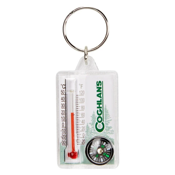 Ein schönes Geschenk und Gadget für den Trekkingrucksack oder die Jacke. Der Schlüsselanhänger ist ausgestattet mit einem Thermometer und einem Notkompass. Inkl. Schlüsselring zur Befestigung.