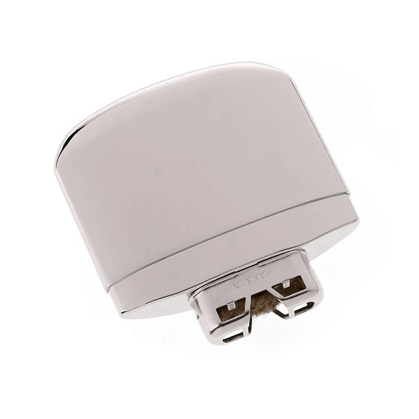 Ein hochwertiger, ausgesprochen flacher, japanischer Taschenofen für Feuerzeug-Benzin. Die Füllung reicht – je nach Sauerstoffzufuhr – max. 12 h. Durch flammenlose Katalysatortechnik verbrennt das Benzin sehr sauber und geruchlos. Das verchromte Metallgehäuse liegt angenehm in der Hand.