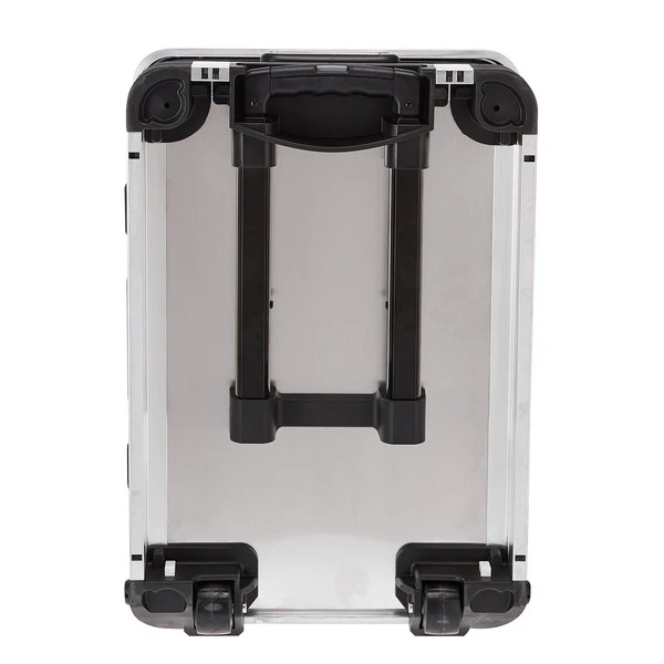 Wenn du eine längere Strecke zurücklegen musst oder der Inhalt schwer ist, zeigt die Alu-Ausrüstungsbox ihre Qualitäten. Dank des herausziehbaren Griffs und der Spezialrollen mit hoher Laufruhe lässt sie sich einfach ziehen. Zum Hochheben oder für kleine Strecken hat die Box seitliche Tragegriffe.